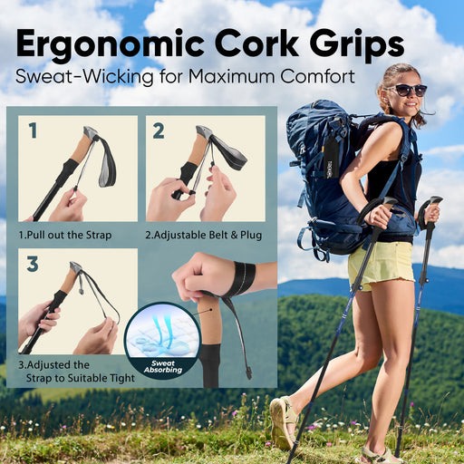 Compact, lightweight tri-fold trekking poles with cork handle to increase your footprint! 🎁LIMITED DEAL: 20% 0FF with code: TREKCK020
