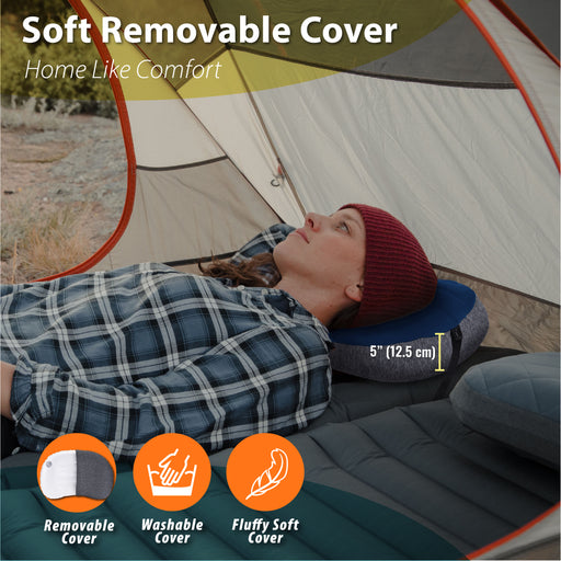 The ultimate inflatable pillow for camping or backpacking with Removable Foam Cover & Pad Strap to hold your pillow on sleeping mats.