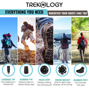 Compact, lightweight tri-fold trekking poles with cork handle to increase your footprint!