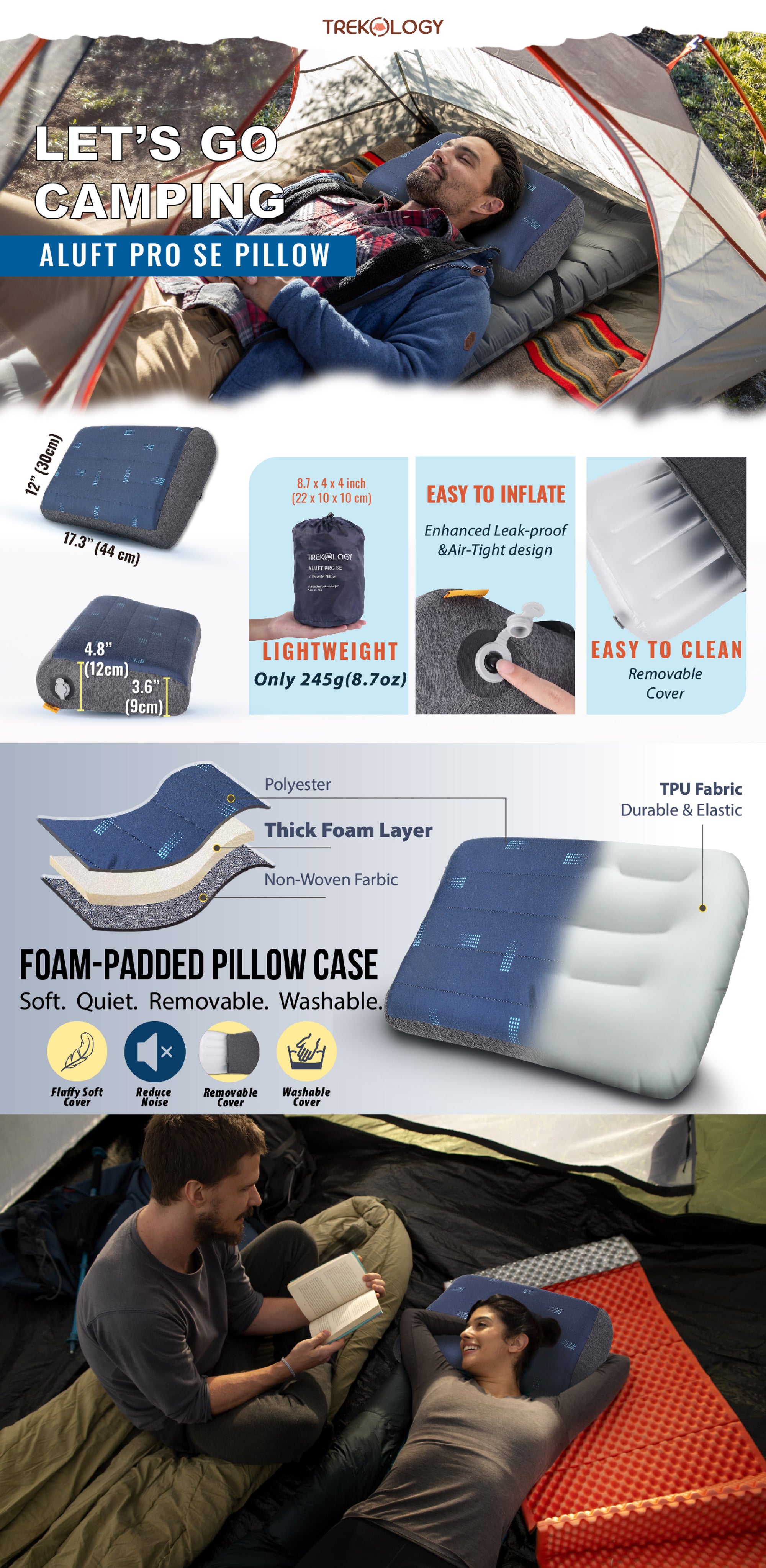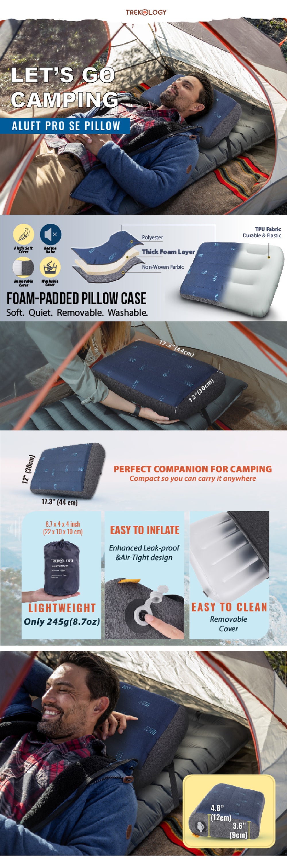TREKOLOGY ALUFT PRO SE Premium Inflatable Camping Pillow with Removable Foam-Padded (AU)
