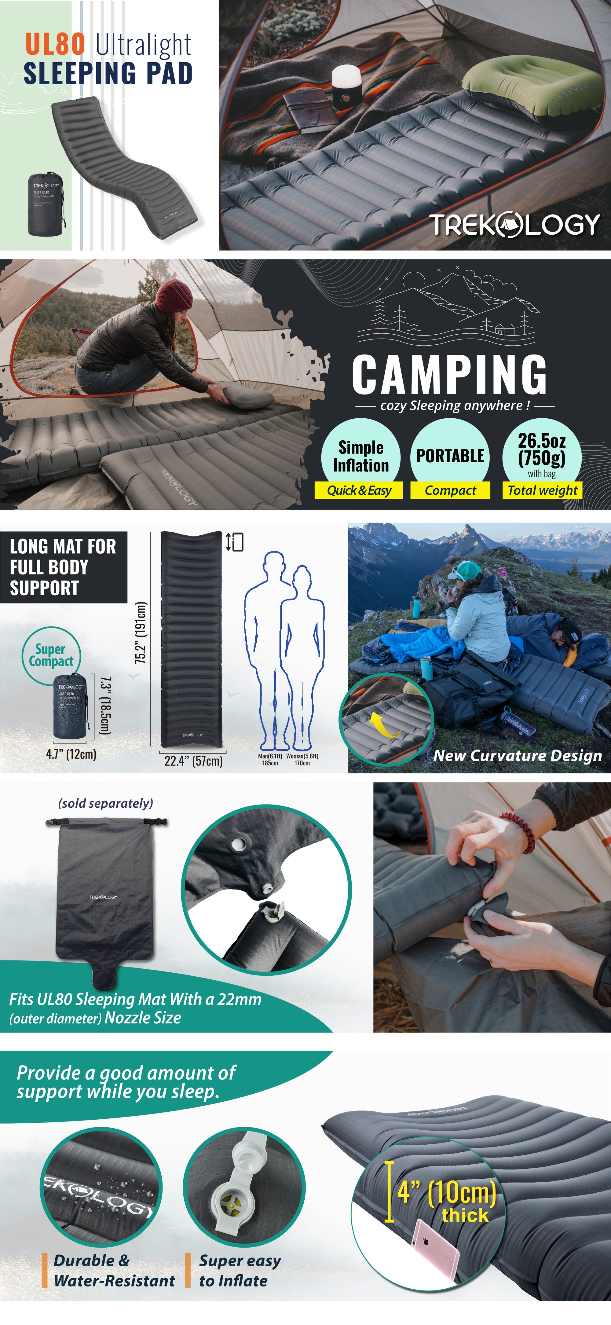 TREKOLOGY UL80 Ultralight Inflatable Sleeping Pad (UK)